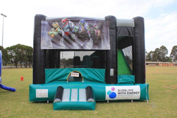 This banner jumping castle features the characters Donatello, Raphael, Michelangelo and Leonardo from the famous Teenage Mutant Ninja Turtles team. So, your child will join the super heroes when they have fun on this popular jumping castle.