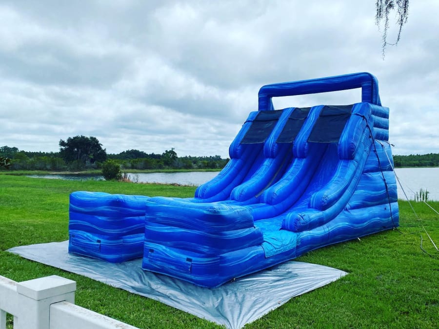 The Blue Crush 5m Water Slide is a two lane inflatable which allows multiple people to enjoy the fun.
