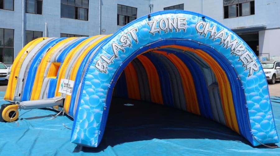 As participants pass through the Blast Zone Foam Chamber inflatable tunnel they are blasted with non toxic foam. It's a great addition to a fun run, colour run, or obstacle course tournament, and is a unique attraction for a foam party, fete or festival or fund raiser. Alternatively, rather than foam we can blast a mist of air through the chamber.