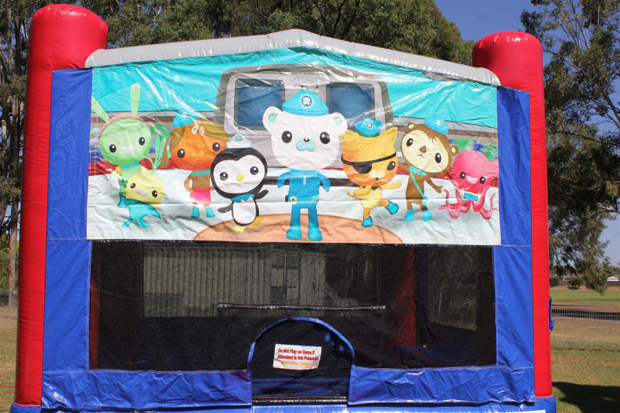 The Octonauts banner jumping castle features the famous Octonauts team of superhero animals.