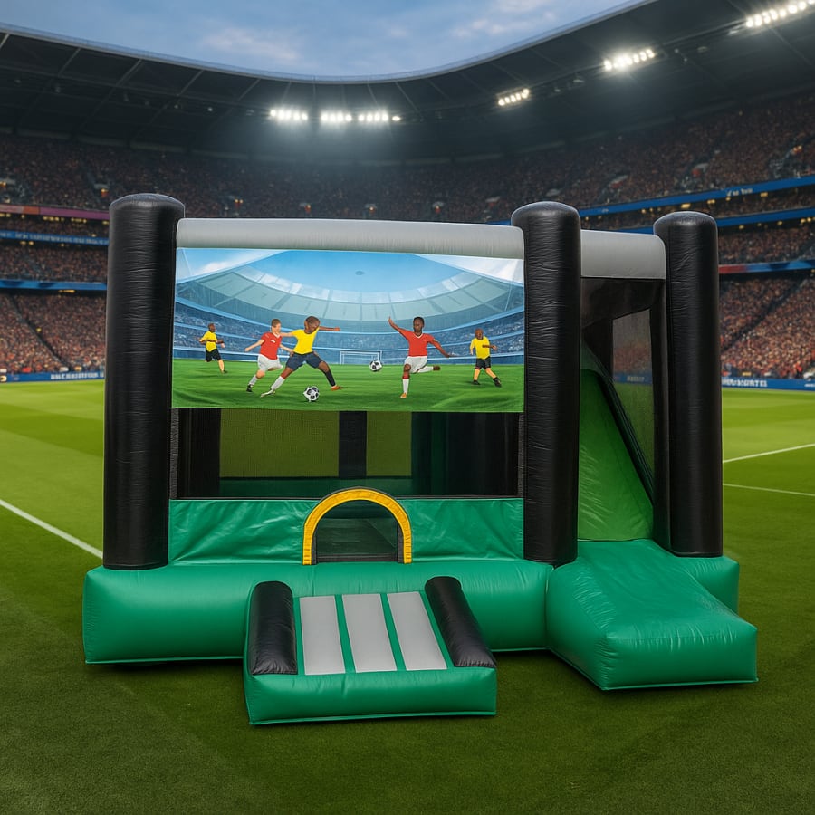 The soccer themed banner is suitable for the Interchangeable 5 in 1 (C5) Combo Castles, Wet/Dry Combos and 2 in1 Castles.
