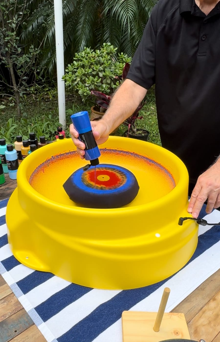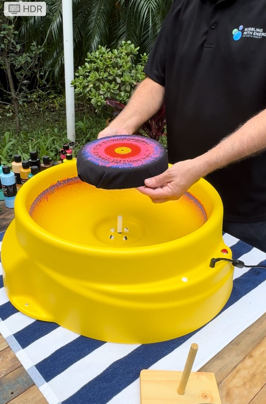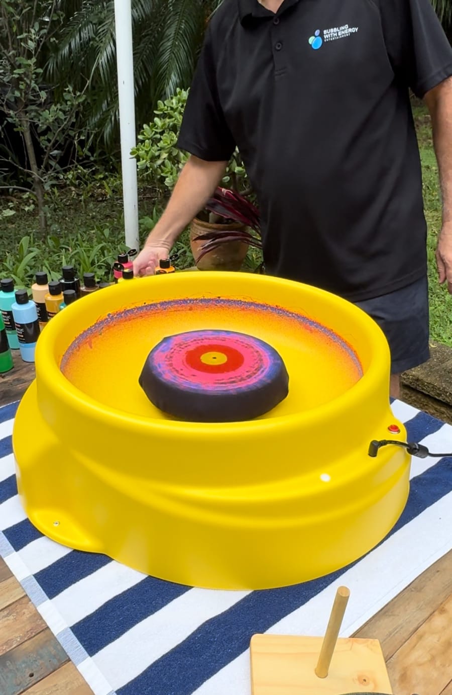 For an extra fee you can also create super colourful Frisbee-like discs. A great gift for everyone. Watch the video here: Vortex Art Spin Pro Machine