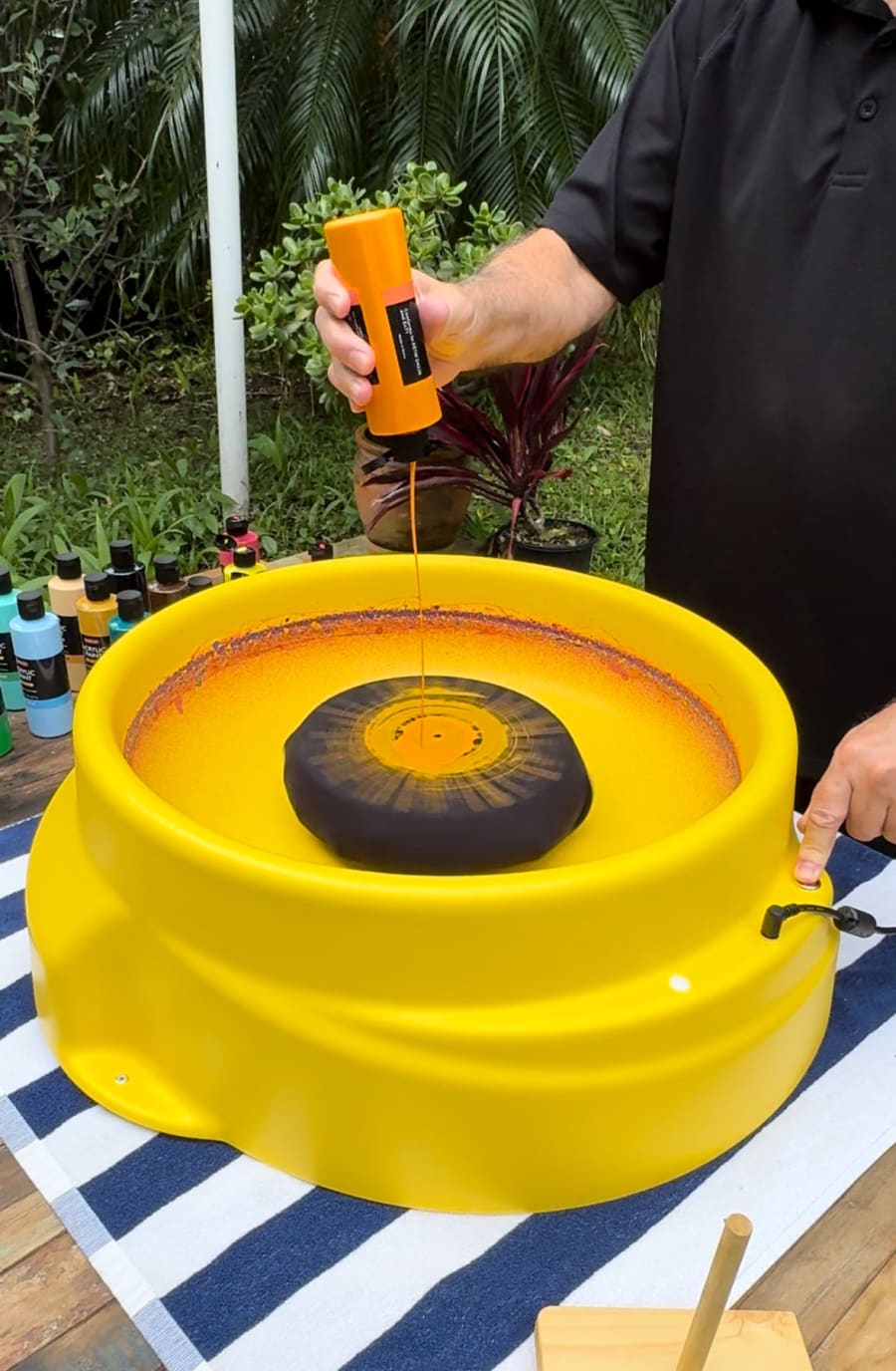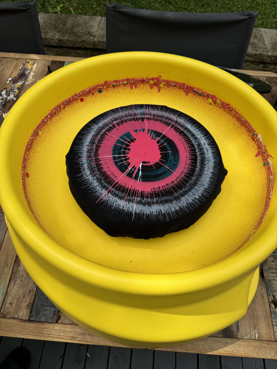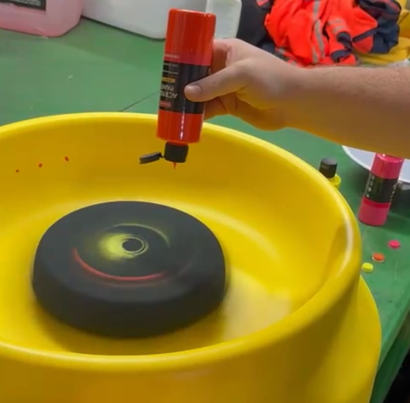 For an extra fee you can also create super colourful Frisbee-like discs. A great gift for everyone. Watch the video here: Vortex Art Spin Pro Machine