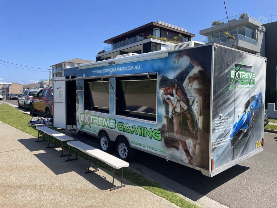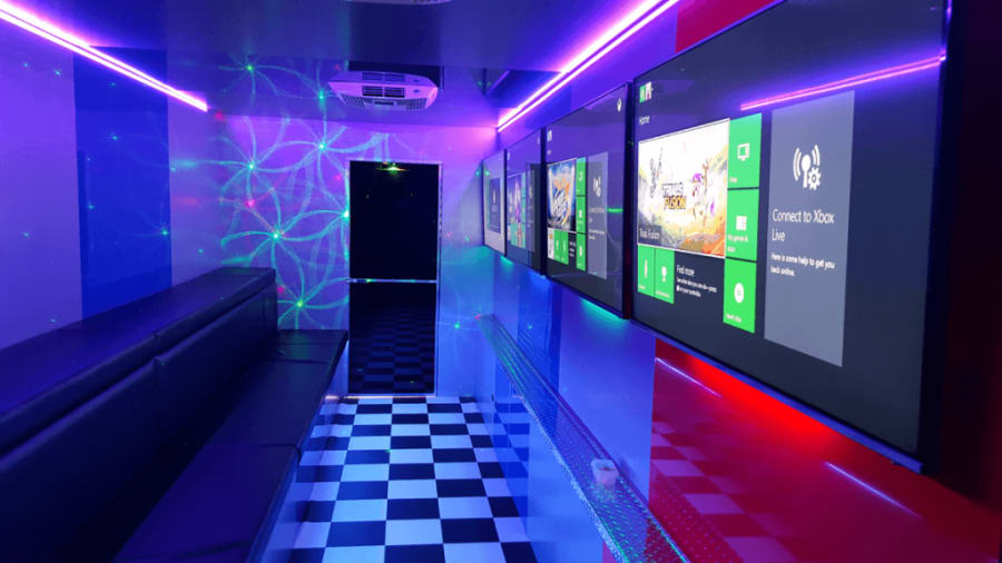 Our moble gaming bus/trailer can take up to 20 kids and comprises of 6 Hi Definition TV screens with XBox, Play Station (PS4) and Nintendo Switch to play. Over 60 games are offered.