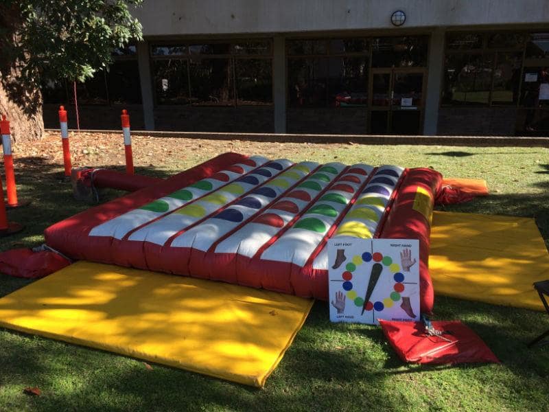 Based on the original Twister game, except inflatable and much bigger. The Inflatable Twister even comes with an oversized spinning board to help randomly choose your next move.