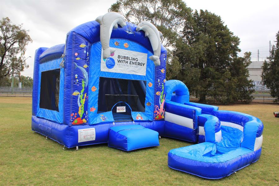 The Under the Sea Jump N Splash 2.0 with pool requires an area of 8.2m L x 6m W x 6m H.