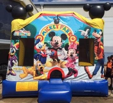 The Mickey Fun Park C4 Jumping Castle Combo needs an area of 6.25m Length, 5.25m width and 4.5m Height.