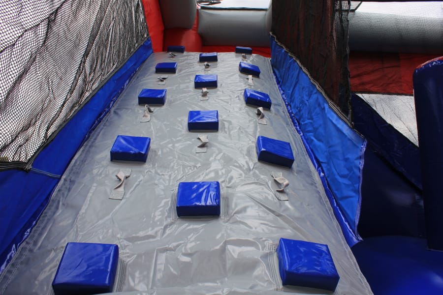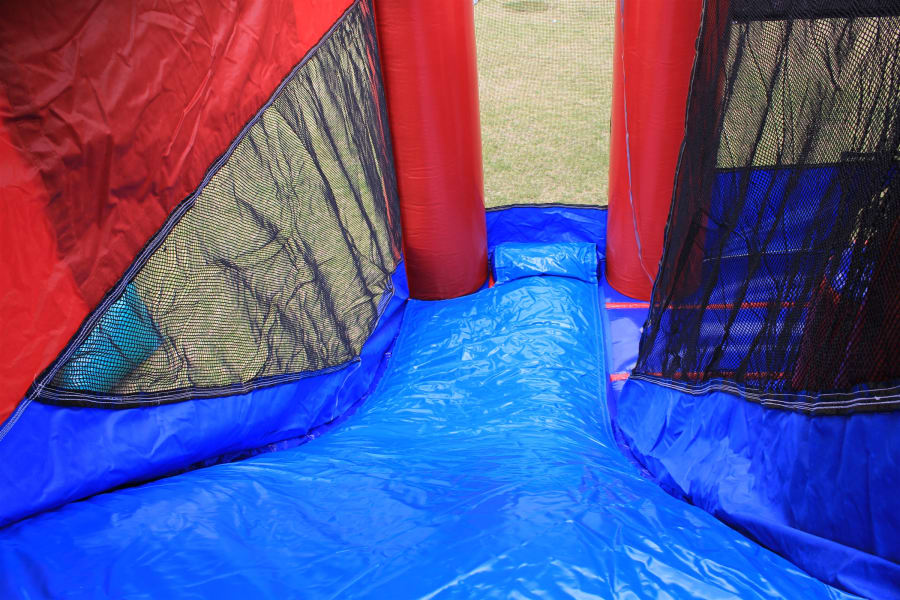 This brand new interchangeable 5 in 1 combo castle is suitable for children up to the age of 13 years old. The inflatable has a jumping area, climbing ladder, slide, pop-ups and a basketball hoop.