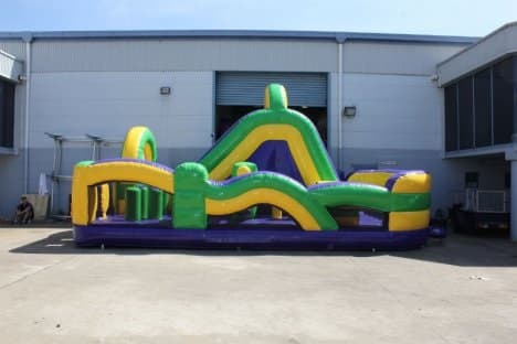 Measuring in at 11m long, 5m wide and 4.9m high this obstacle course can fit in most backyards and smaller spaces. This inflatable is a new arrival and is in high demand.