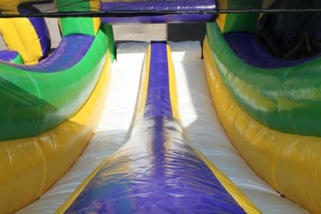 The Radical Junior Obstacle Course is a great option for the kids when you're looking for something a little more challenging than a jumping castle. Two participants enter through the openings in the right side and proceed through a series of obstacles, through tunnels, up the rock climbing wall and down the slide to exit the front. This inflatable obstacle course has everything you need to completely tire out the kids for the day, featuring tackling bags, inflatable arch obstacles to a jumping castle, rock climbing wall and two slide lanes.