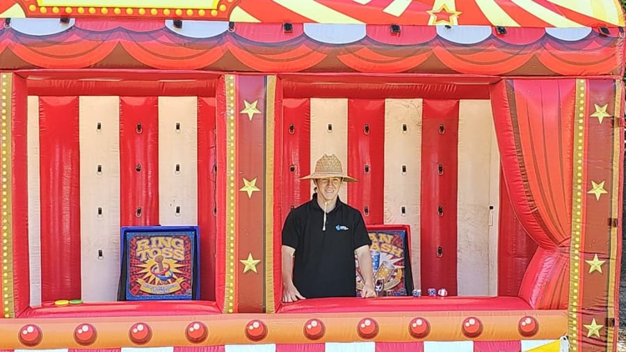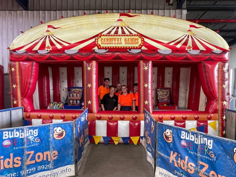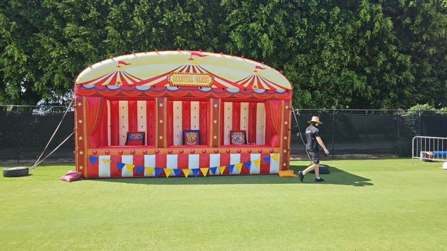 Enhance your next fund raiser, fete, community festival, carnival, corporate event or company promotion with the mobile inflatable Sideshow Games Booth.