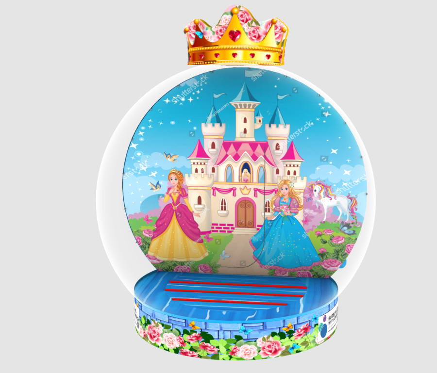 The Snow Globe Princess theme is an alluring inflatable globe designed for the perfect photo or selfie opportunity. The Inflatable Snow Globe is a selfie station like no other. The Inflatable Globe will take your event to the next level and have your audience intrigued from the get go. Guests won’t be able to resist taking a photo in the Globe!